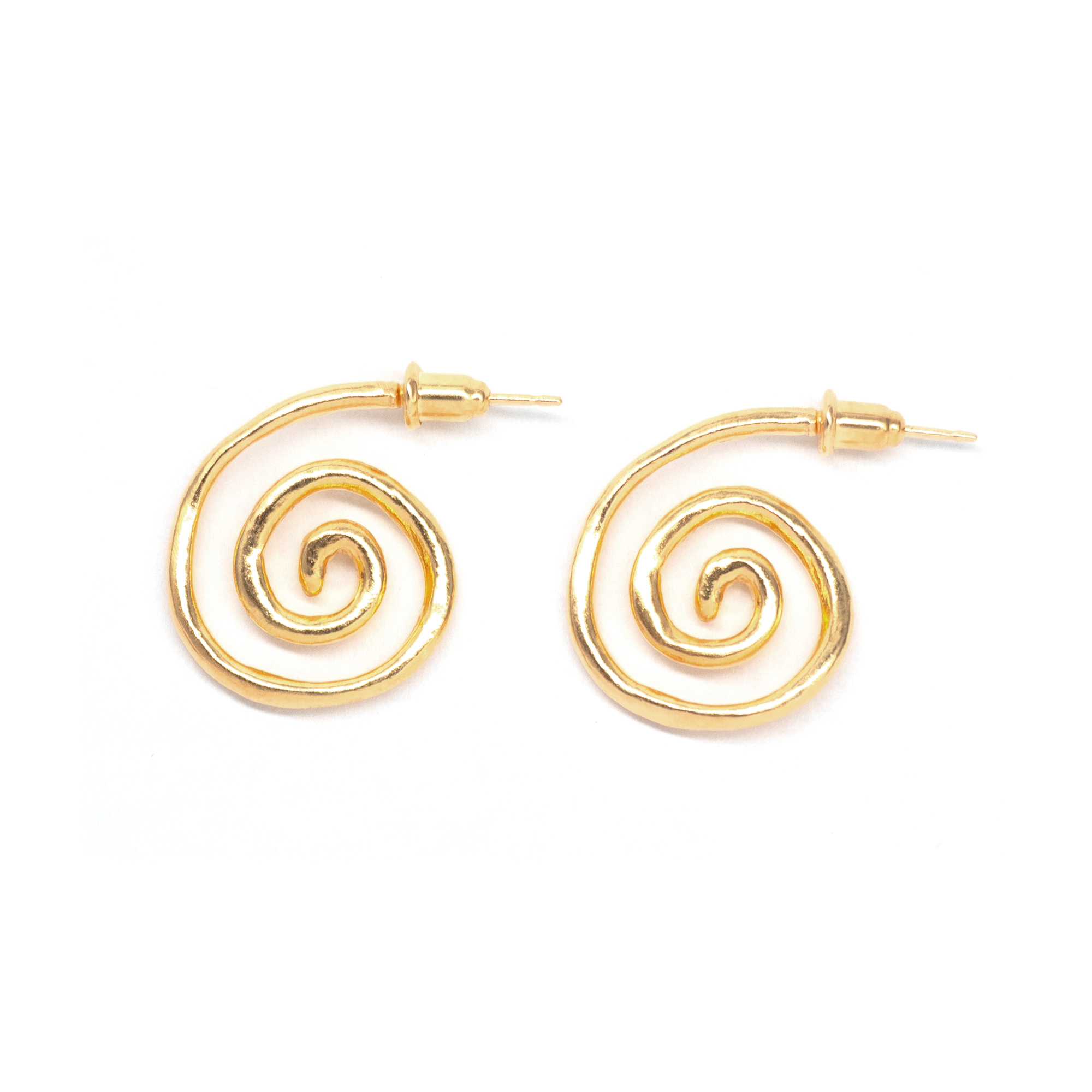 「呼吸・生命」を意味するプラーナ。大きめサイズのスパイラル形状のゴールドイヤリング。