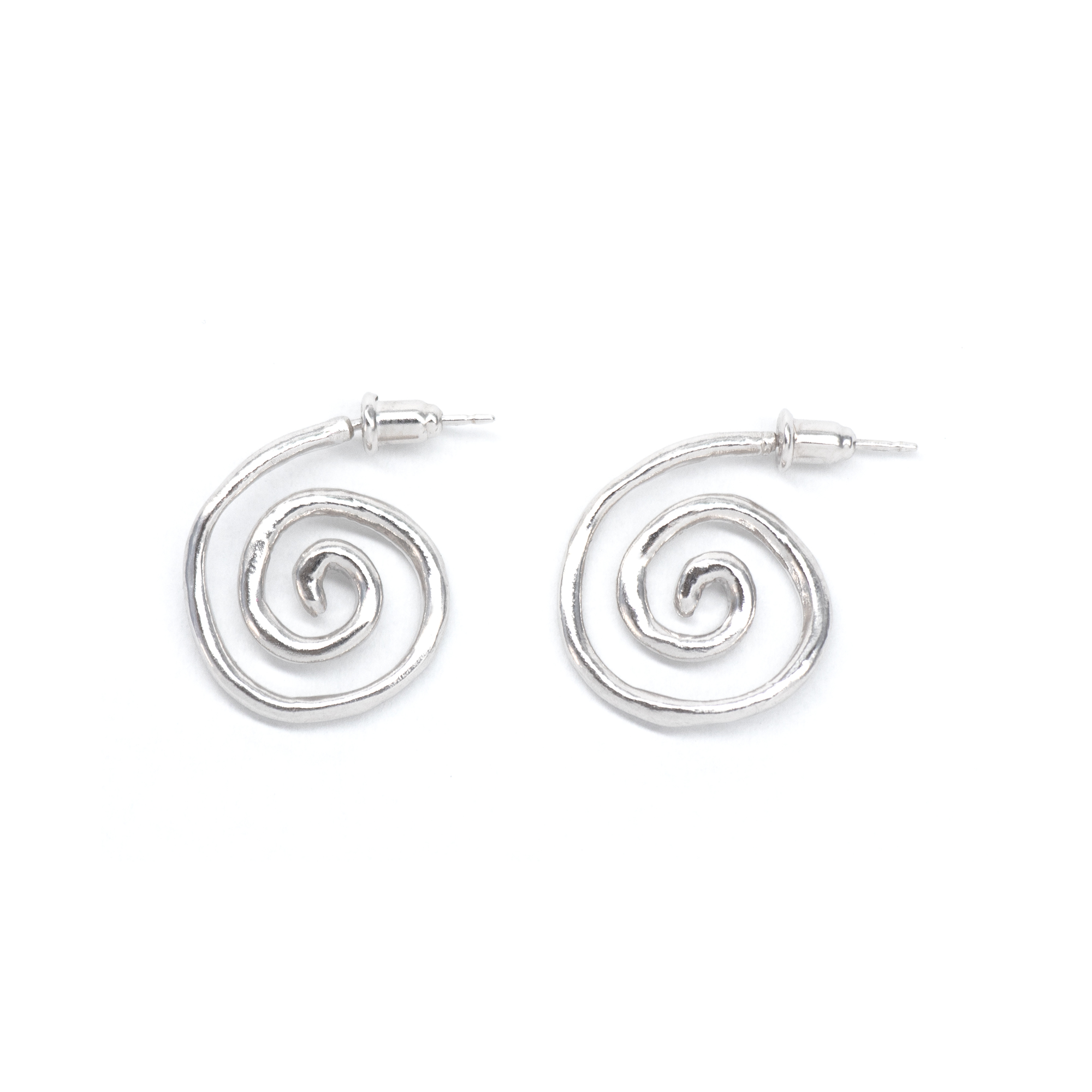 「呼吸・生命」を意味するプラーナ。大きめサイズのスパイラル形状のシルバーイヤリング。