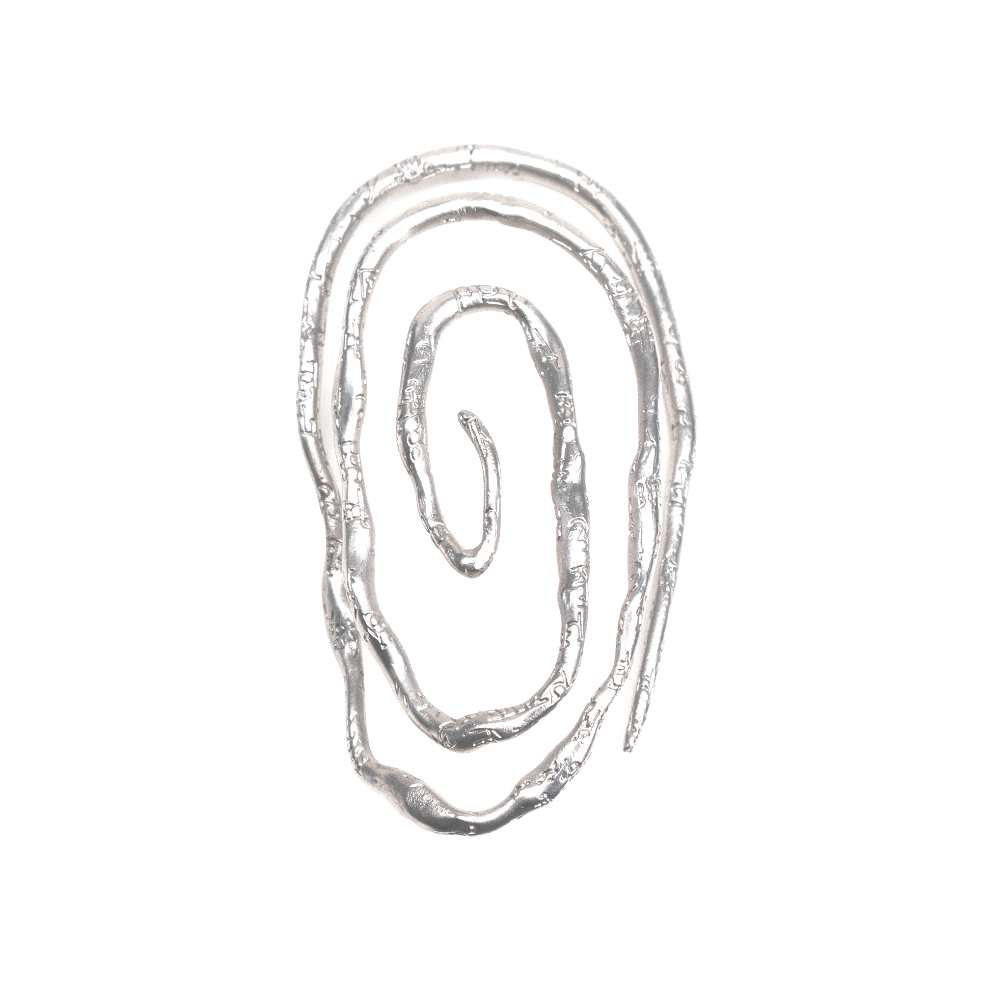 耳の形に合わせ形状調整して耳の裏側に挟み込むように着用するシルバーのイヤーカフジュエリー。